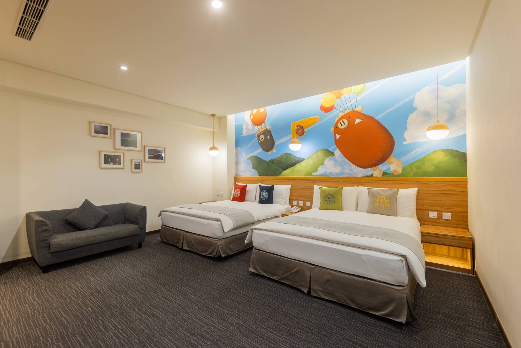 以親子樂遊主題為主,房內配備孩童喜愛的溜滑梯、小型翹翹板…等,讓大小朋友縱使在房內也能開懷遊樂,享受甜蜜的家庭時光。